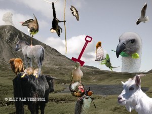 De achtergrond is de basis, dan heb ik van allerlei foto’s de dieren “uitgeknipt”.