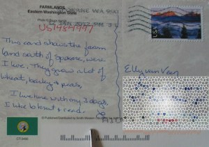 De kaart komt uit Eastern Washington State en is gestuurd door Jo. Ze schrijft: