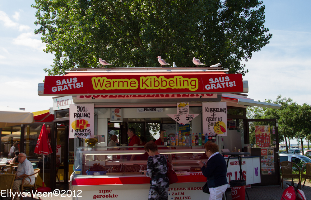 Ná het dolfinarium nog even een visje gegeten.Ik had het al gelezen: de slechtse vis eet je aan de boulevard en inderdaad, ik moet de krant helaas gelijk geven. In Enkhuizen wordt de vis vers door het beslag gehaald en direct gebakken. Hier kreeg ik voorgebakken kibbeling, 2 x door het vet gegaan, dus gortdroog en taai.
