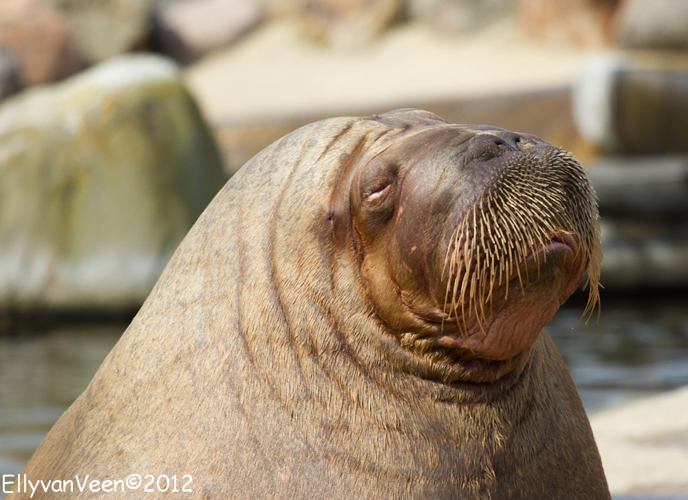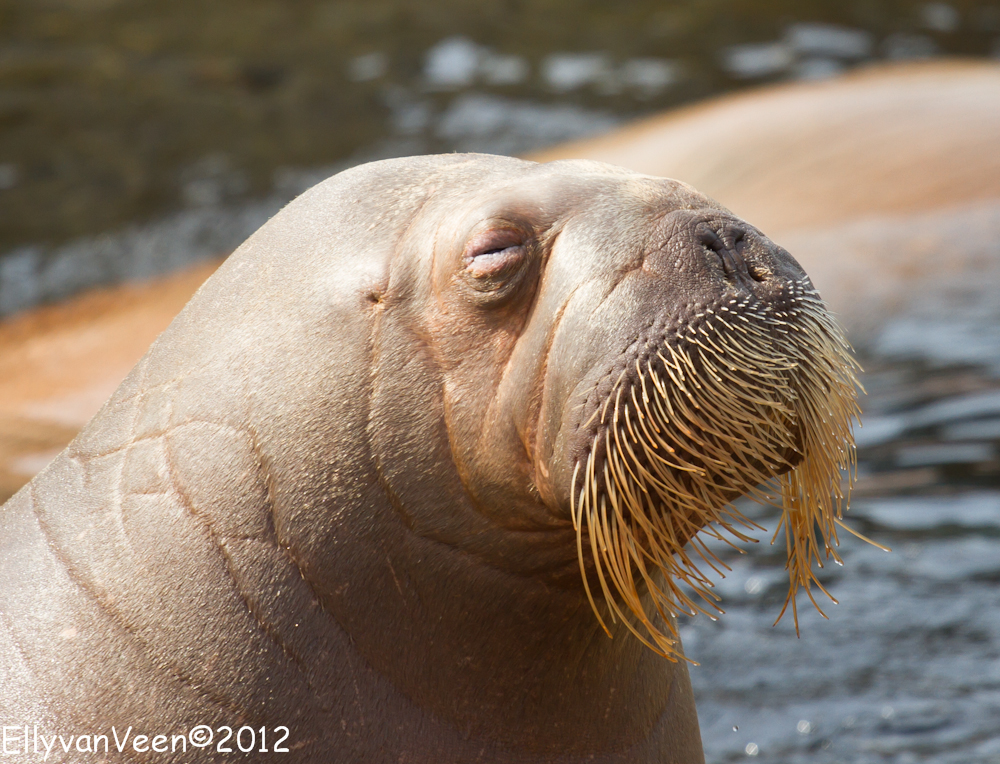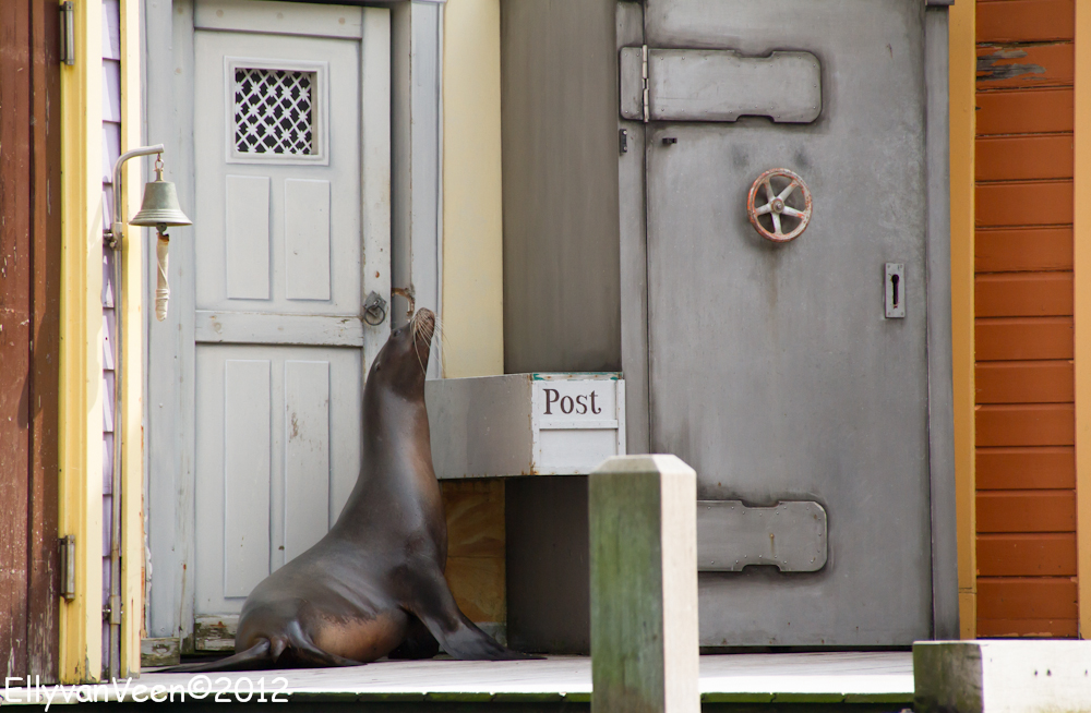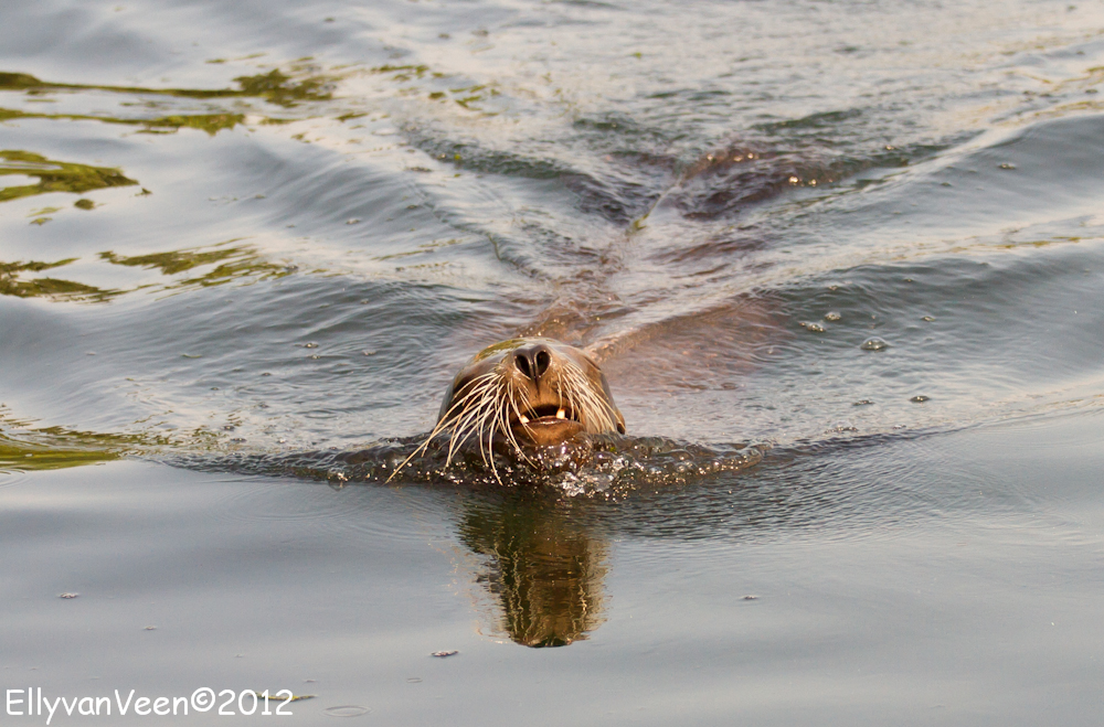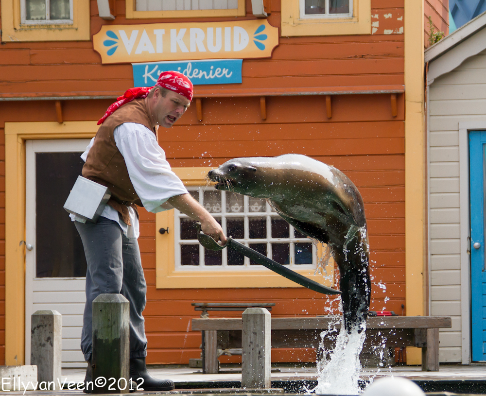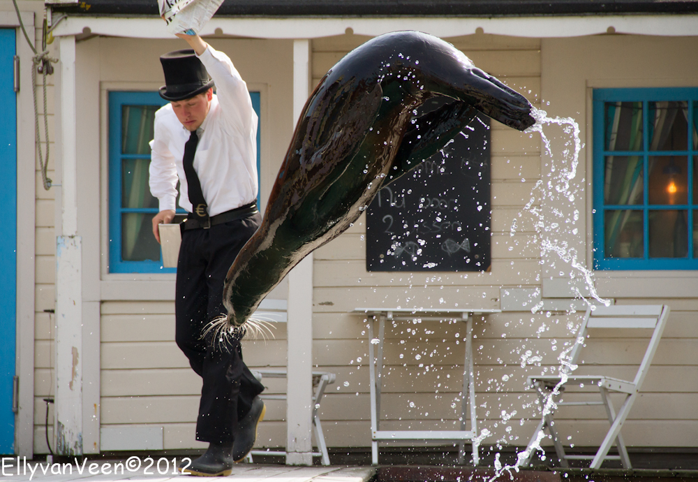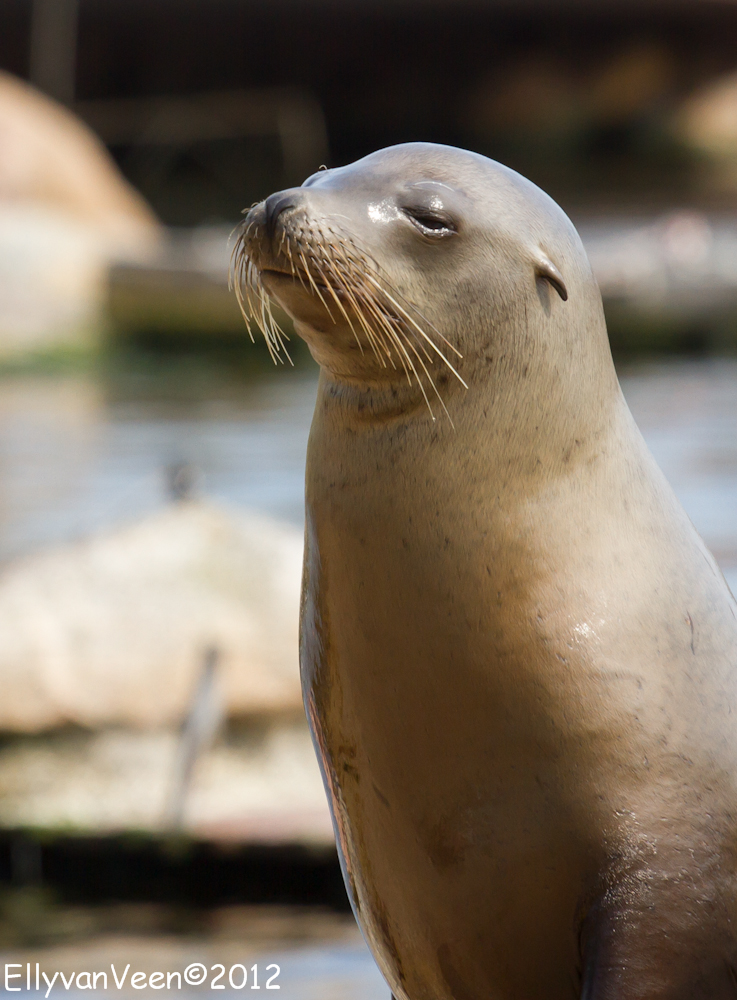 Ik heb wat rondgewandeld en foto’s gemaakt. Bij de dolfijnen was de lagune afgesloten: het was speciaal zwemmen met een groep kinderen. Helaas dus geen Flipper voor mij…nou ja, ééntje dan. Ik vind het opmerkelijk en niet echt klantvriendelijk: zoveel geld betalen, dan niet overal mogen komen en dat midden in het hoogseizoen. Gelukkig kon ik wat leuke plaatjes schieten van de Steller Zeeleeuwen, Walrussen, zeehonden en gewone zeeleeuwen.