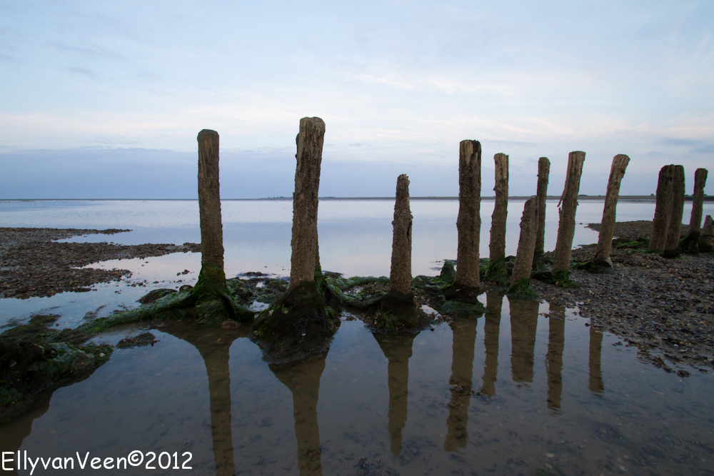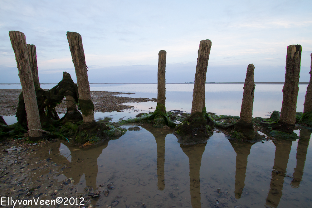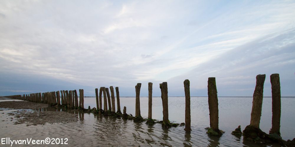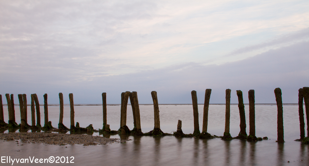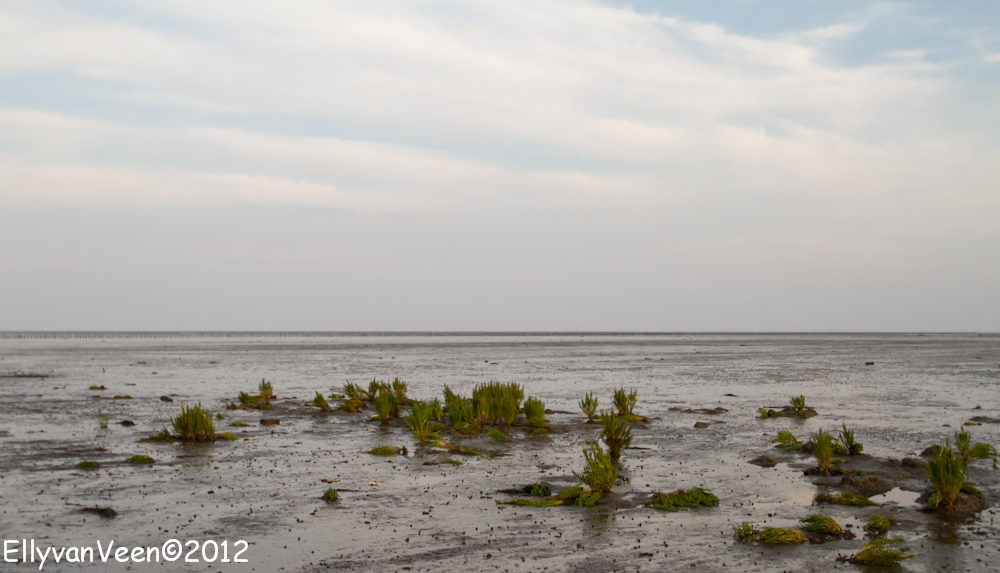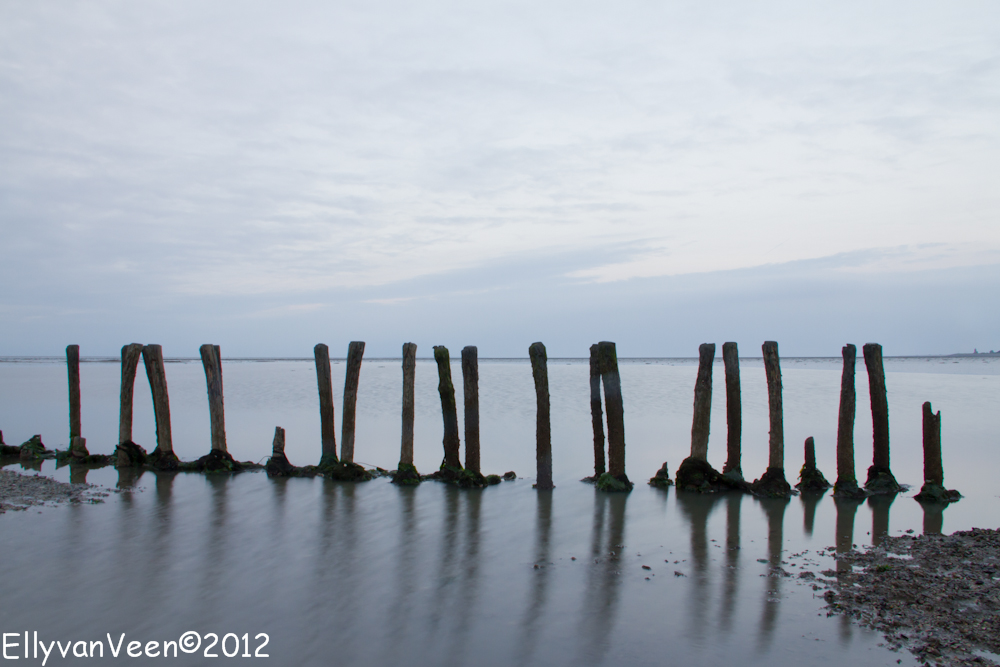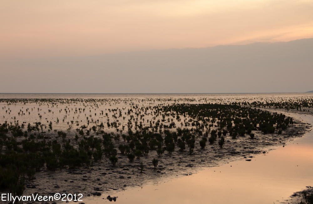 Daarna gingen we het Wad op, om de theorie in praktijk te brengen. Maar dat viel nog niet mee, ik had 1 grijsfilter, geen verloopfilter en het was dus zoeken en uitproberen welke instellingen een goede foto opleverden. Het was jammer dat de bewolking een spectaculaire zonsondergang verhinderden, maar wat is het ongelooflijk mooi op het Wad, wat een rust en ruimte..prachtig gewoon… Sinds juni 2009 staat het Wad op de Unesco-werelderfgoedlijst,