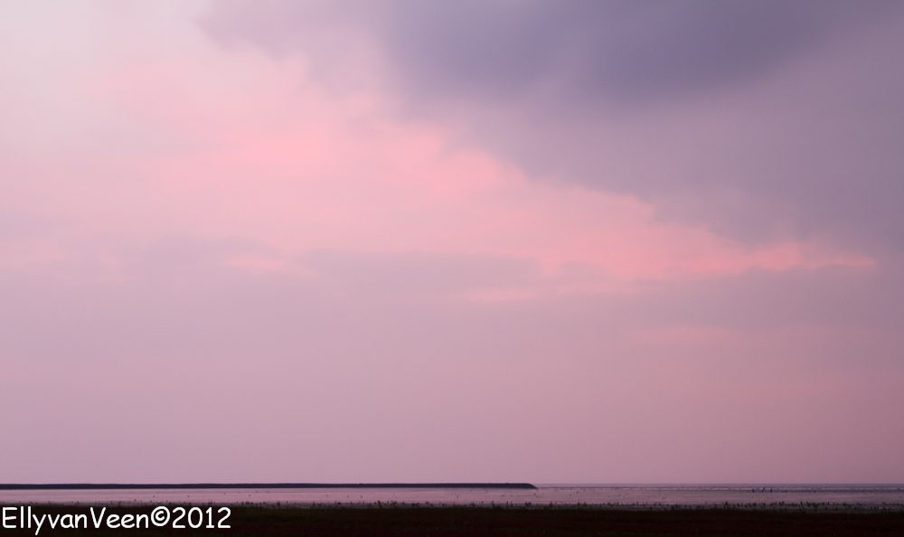 De volgende ochtend stond ik om 6 uur weer op de natte klei, nu om de zonsopgang vast te leggen. Ik werd verrast door de snelheid waarmee het licht werd, prachtig was dat, de kleuren aan de hemel wisselden snel en al snel stond de zon aan de hemel.