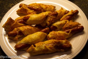 Als je zorgt dat je altijd een pakje bladerdeeg in de vriezer hebt én een pot knak-, bock- of ander worstje, grijp je nooit mis.