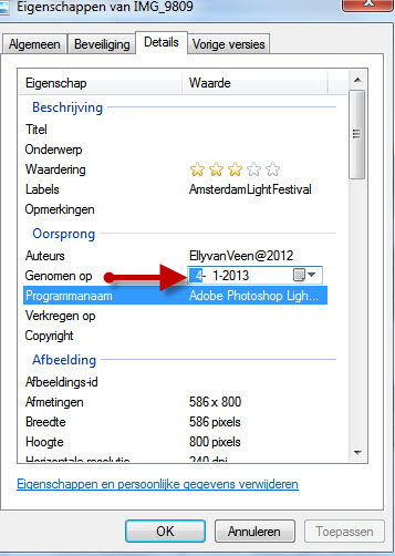 Exif data wijzigen – zoals de datum aanpassen – kan ook met Windows Explorer. Er kunnen ook gegevens worden toegevoegd, zoals auteur, beschrijving en copyright.