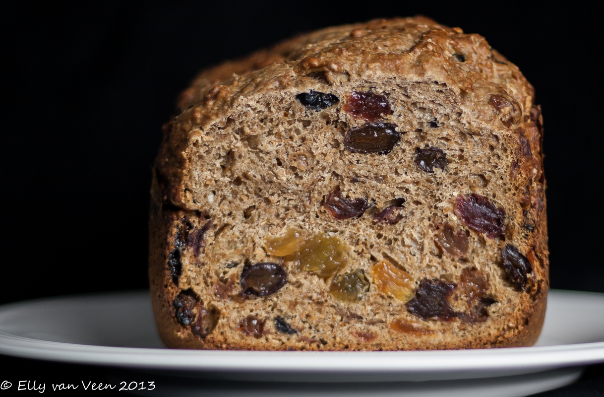 Trots laat ik mijn Barmbrack zien…helemaal goed….. De vulling bestaat uit Chileense rozijnen (A.H.) welke prachtig groot en en kleurig zijn en gedroogde cranberries.