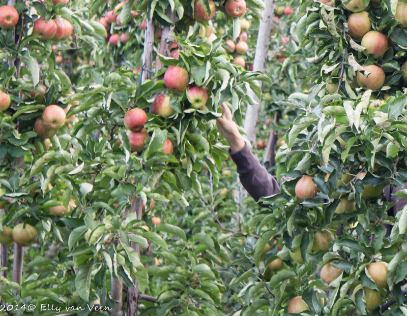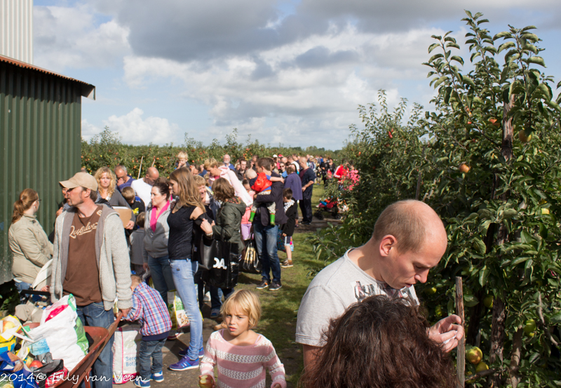 Bij de fruittelers ter Hofstede in Wijdenes kon je vandaag voor een prikkie een zak fruit – appels of peren- plukken. Vanwege de gekelderde afzet na de boycot door Rusland werd de oogst anders vernietigd. Dit vonden Jan en Annelies geen optie, en terecht. Als je het hele jaar door je stinkende best doet om een mooi en goed product te kweken is het wel zuur als al je werk voor niets is geweest.