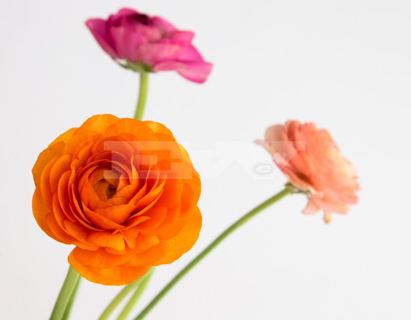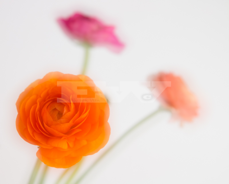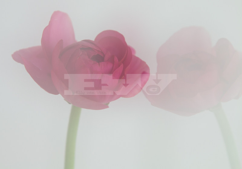 Deze foto bestaat ook uit 4 opnames, eerst alleen de linkerbloem scherp én onscherp, daarna heb ik dezelfde ranonkel nog een keer gefotografeerd. Ik vind het niet echt fraai geworden.