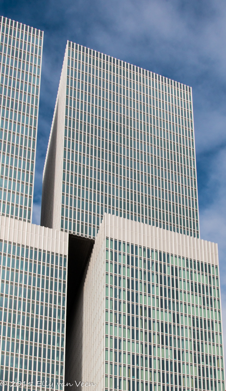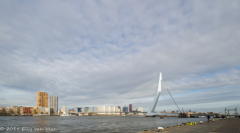 Eerst zijn we naar de Kop van Zuid gegaan. Vanuit hier kijk je prachtig op de stad en de Erasmusbrug
