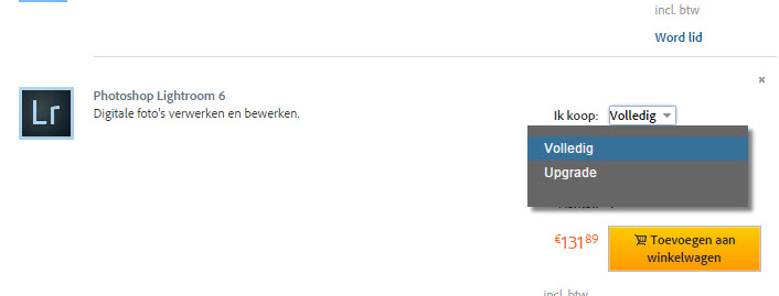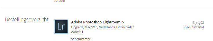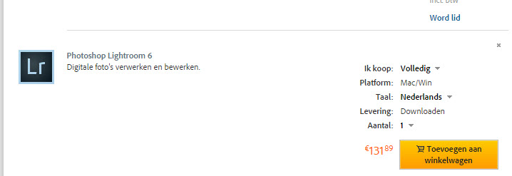 De zoektocht…: met behulp van Joke vond ik het uiteindelijk…. Je begint op de pagina met de Photoshop Collectie en daar klik je op PhotoshopLightroom 6