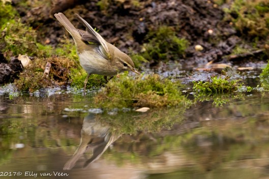 Het blijft lastig, is het de Fitis (Phylloscopus trochilus) of de Tjiftjaf?? Gezien de kleur van de poten en het fouragerende gedrag op de grond hou ik het op de Fitis, moeten ze maar niet zoveel op elkaar lijken. Maar het is een prachtige vogel.