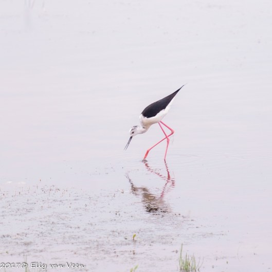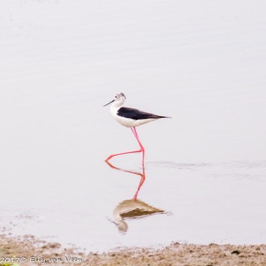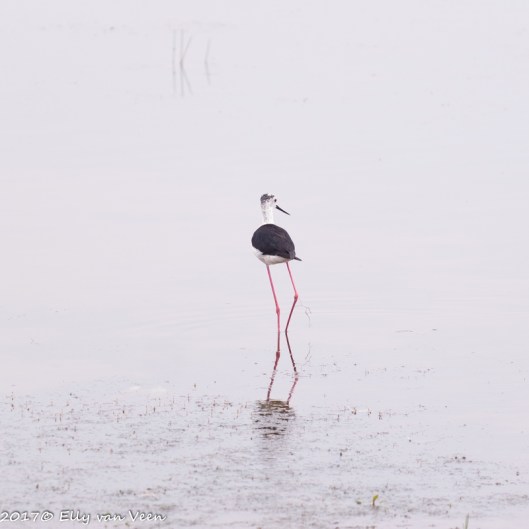 Soms, heel soms komt er iets heel bijzonders voor mijn lens. Dat was met deze Steltkluut het geval. De Black-winged Stilt, Himantopus himantopus staat op de rode lijst. Steltkluut is het juiste woord, de roze poten zijn half zijn lengte. Waar zijn poot vooruit steekt is niet zijn knie, maar zijn enkelgewricht, De steltkluut heeft dus heel grote voeten…