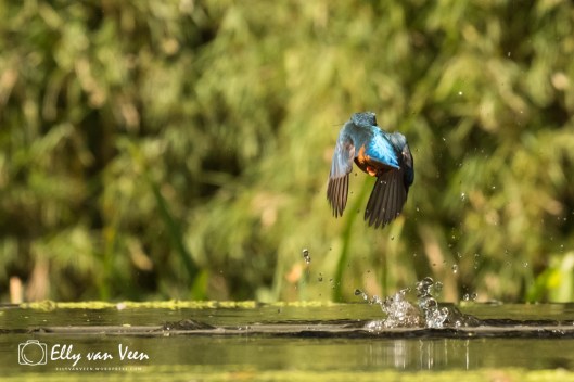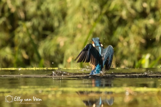 Met 2 vriendinnen én de camera zijn we naar de tuinhut van Arjan Troost geweest. Het blijft geweldig, breedbeeld vogel-tv. En deze hut had als extra het IJsvogeltje. Nu dus alleen foto’s van deze fantastische visser. In het Engels niet voor niets KingFisher genoemd. Omdat mijn zoom max 200 mm is, zijn de foto’s gekropt, maar voor mij drukt dat de pret helemaal niet.