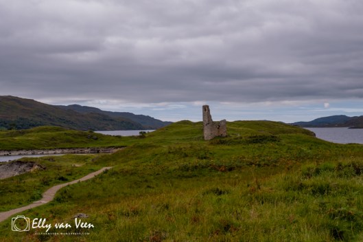 Het landschap is zo afwisselend, betoverend gewoon. Als we rond het Loch zijn gereden rijden we een klein stukje terug om de restanten van Ardvreck Castle te bekijken. Het is fijn om even een stukje te lopen en de benen te strekken. De geesten die hier rondspoken hebben we jammer genoeg gemist