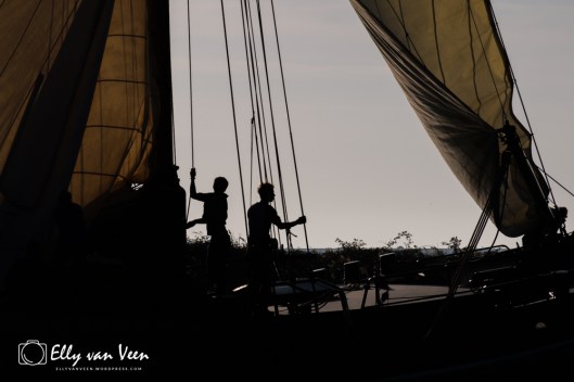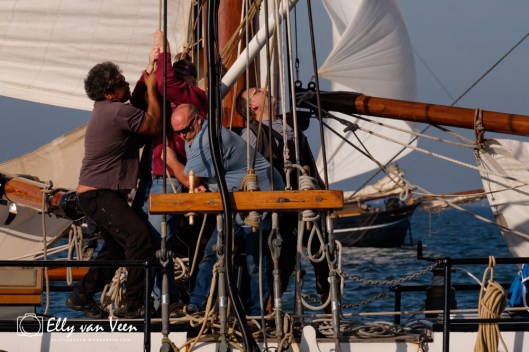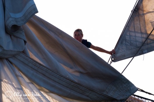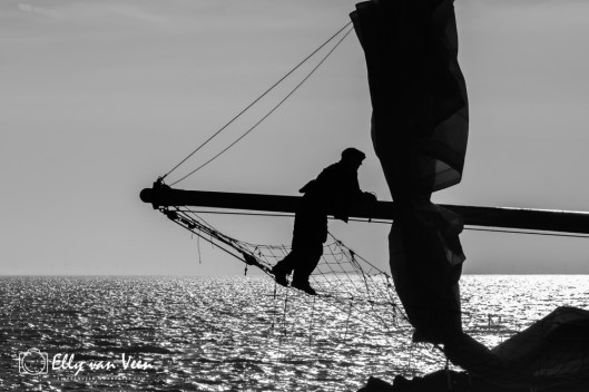 Ook dit jaar was ik aan boord van de Deo Annuente om de spectaculaire ankerstart van de 44e Klipperrace Enkhuizen vast te leggen. Het weer was fantastisch, de wind stond goed en blies de zeilen bol, zodat de klippers snel het krabbersgat verlieten om hun rondje te maken op het IJsselmeer. Het is hard werken aan boord, het hijzen van de zeilen vraagt heel wat spierkracht en samenwerking, al zijn sommige capriolen best wel een beetje eng…