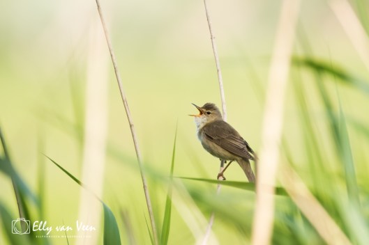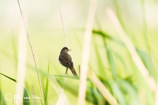 Opeens verrastte dit ukkie me met een concert. Omdat ik het leuk vind om er een naam bij te hebben, had ik de foto op een forum gezet. En dan komen de vakmensen om de hoek kijken… De één zegt rietzanger ( uittleg: het zit in het riet en het zingt…) de volgende : kleine karekiet en daarna is het een bosrietzanger. (uitleg: Zie een vrij koudbruine vogel, lange handpenprojectie, duidelijke lichte toppen erop, maakt het voor mij een Bosrietzanger)