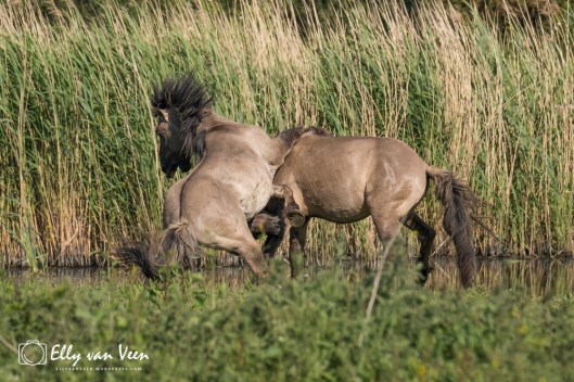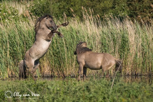 Rustig liep ik richting kudde en toen begonnen de wat grotere veulens ook te “knokken” heel schattig om te zien