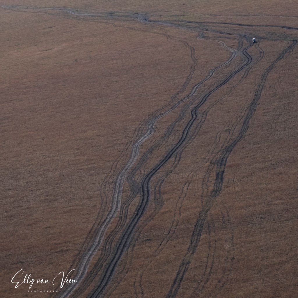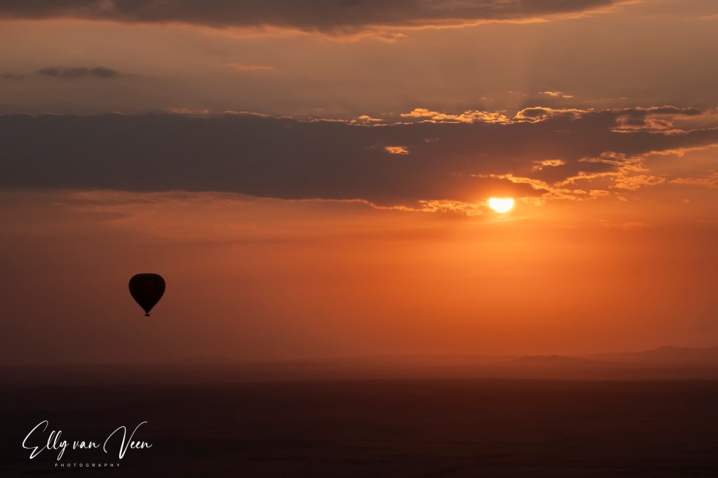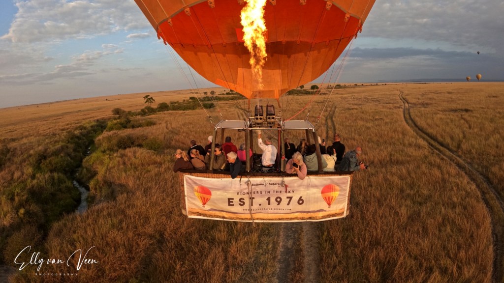 Onder ons zien we de volgauto’s, want het is natuurlijk altijd een verrassing waar de wind ons zal brengen. Maar gelukkig waaien we niet richting Tanzania, want terug komen geeft wel wat problemen omdat de rivier Mara er tussen zit.