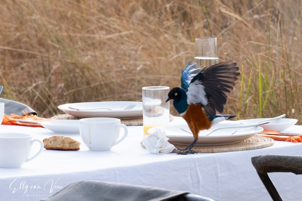 We dansen een uur door de lucht waarna er een heerlijke bushlunch klaar staat. Er is kaas!! Heerlijk…