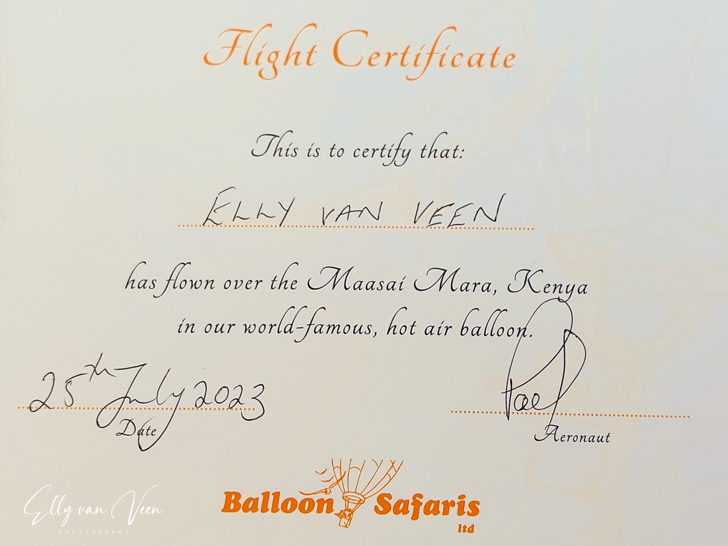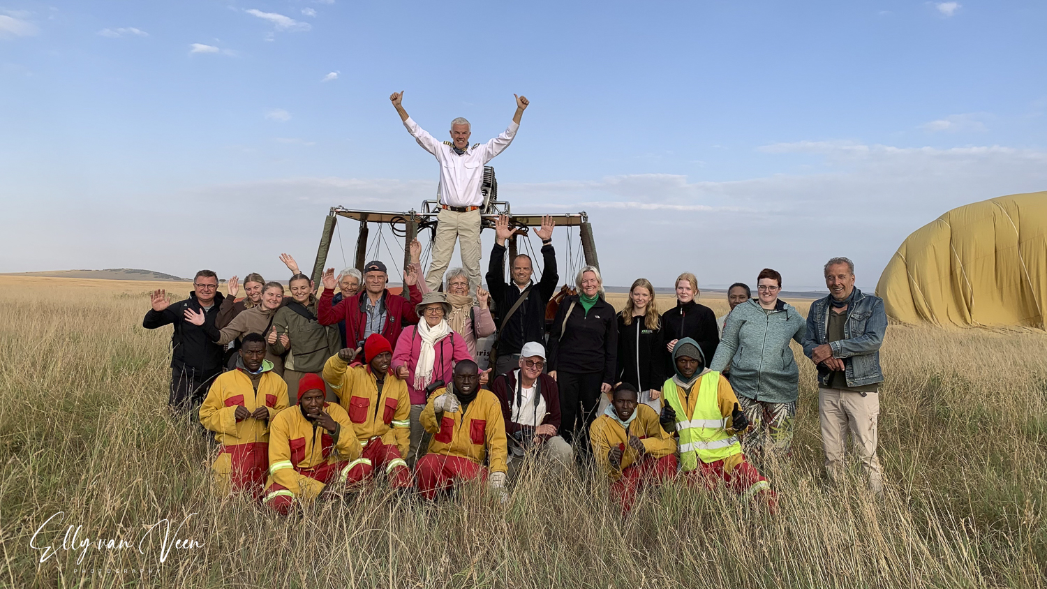 Onder ons zien we de volgauto’s, want het is natuurlijk altijd een verrassing waar de wind ons zal brengen. Maar gelukkig waaien we niet richting Tanzania, want terug komen geeft wel wat problemen omdat de rivier Mara er tussen zit.