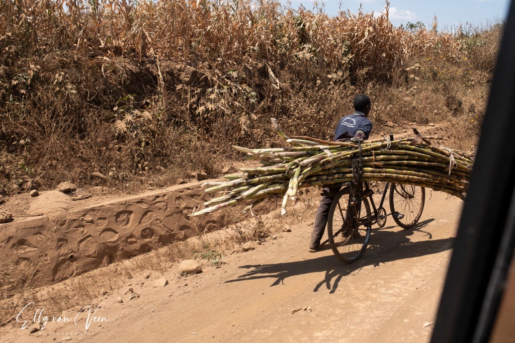 Het landschap verandert, het wordt groener, heuvelachtiger, de vrouwen zijn nog kleuriger gekleed en overal zie je bananen.