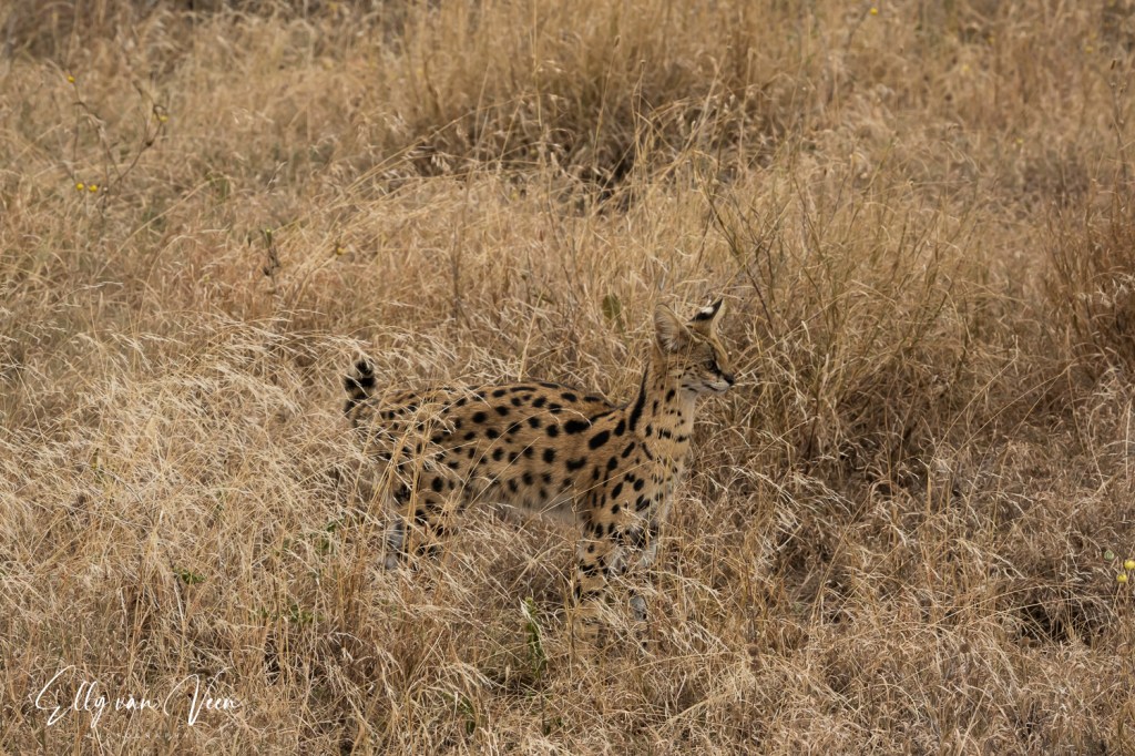 Ik spot een serval, al wist ik dat toen nog niet. Ik riep Kat… Apetrots ben ik, dat ik ook “iets” heb gespot. De Serval zie je weinig dus dat is leuk, het zal ook de enige serval zijn die we te zien krijgen tijdens deze reis