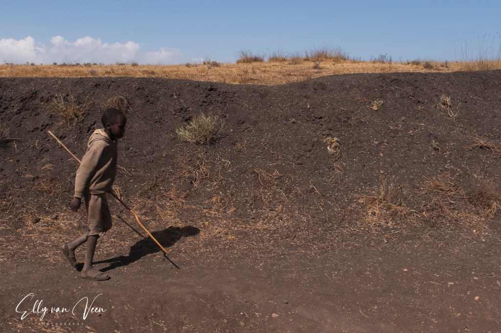 Daar zie ik 2 jongens een kudde koeien naar de rivier leiden. Ik bedenk me dat ze dus gewoon in leeuwengebied lopen. Ik doe het ze niet na. Daarna komen nog een paar zebra’s water drinken.
