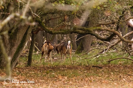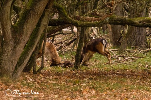 Als snel zien we de eerste hindes bevallig lopen, tenslotte is het de maand van de liefde.