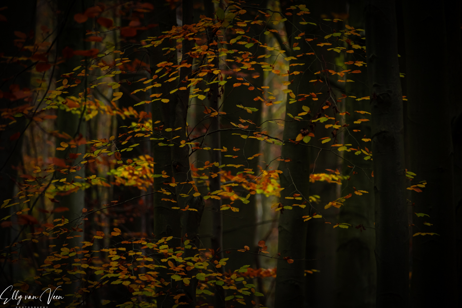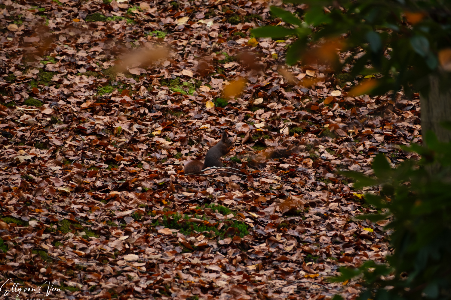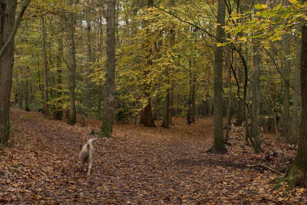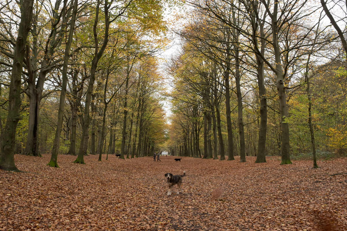 Het is een prachtig bos, waar ook de honden los mogen. Ik heb vanaf statief gewerkt omdat het nogal donker was en zo konden de sluitertijden lager. Dat leverde wel wat plaatjes op van photobommende honden, echt grappig…