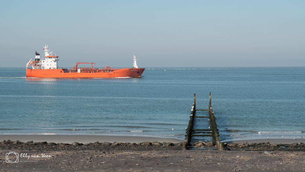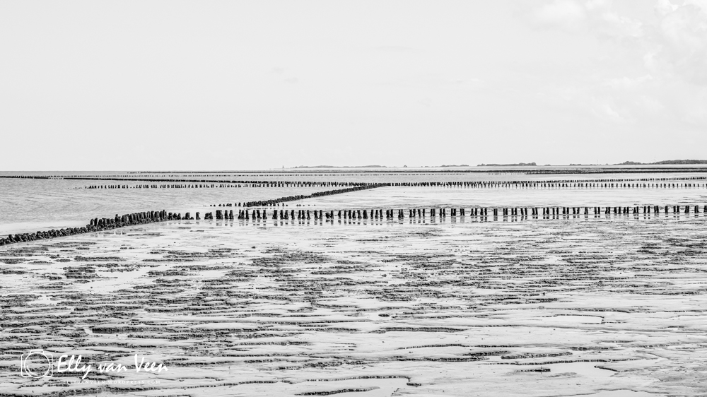 Foto 3 is genomen tijdens zonsondergang. Ik heb hier een ND filter 10 gebruikt en een sluitertijd van 30 seconden, daardoor wordt het water melkachtig en vlak. Het werd vloed dus de enorme beweging die er in het water aanwezig was, is niet zichtbaar door deze lange sluitertijd.