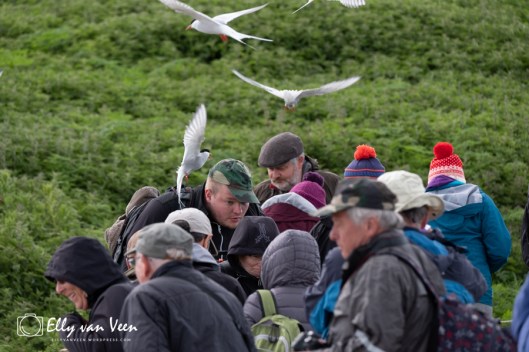 De eerste dag gingen we al direct naar de Farne-eilanden toe, om er rond te wandelen. Wat een geweldige beleving!! Als je eerst de agressie-aanvallen van de Noordse Sterns hebt overleefd ( pet op!!) dan beland je daarna in het puffin-paradijs.