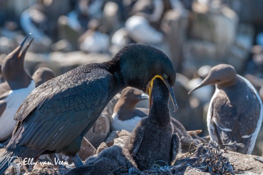 Met de boot voeren we langs de eilanden en zagen de enorme kolonies Zeekoeten en Alken. Wat een prachtige vogels zijn dit! De hoeveelheden vogels zijn enorm en het is onbegrijpelijk dat de paartjes elkaar terug kunnen vinden