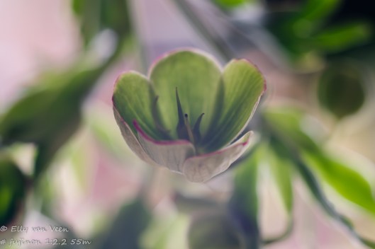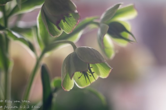 Gister ben ik aan de slag gegaan met de Fujinon vintage lens. Ik had er een Macroring tussen zitten en heb de helleborus in huis gefotografeerd. Als het wat minder waait mag ie mee naar buiten, zonder de macroring. Ik denk dat dit de bijzondere “bubble” bokeh van dit lensje ten goede komt. Maar dat moet ik dus nog proberen.
