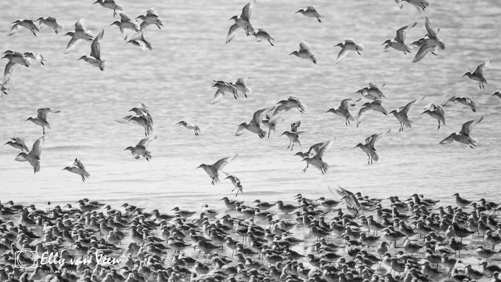 Op Ameland zag ik voor het eerst Kanoeten…en het waren er héél veel. De Waddenzee is ongelooflijk belangrijk voor deze strandloper. Zonder het Wad zou deze vogel het niet redden ( Calidris canutus )