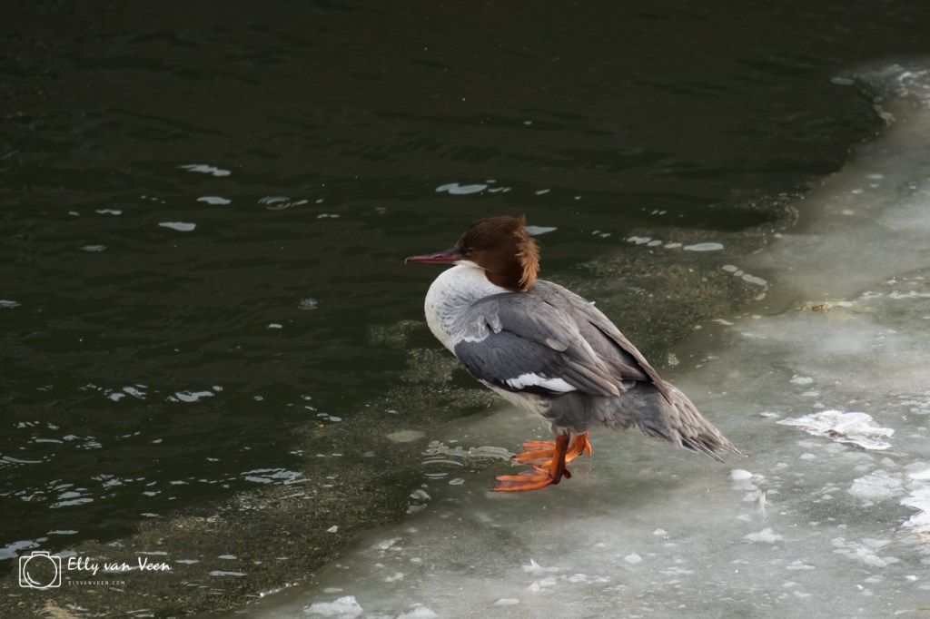zo zag ik de grote zaagbek, fijn om te zien dat ook deze vogel een bad-hairday kan hebben…tja coronakapsel he