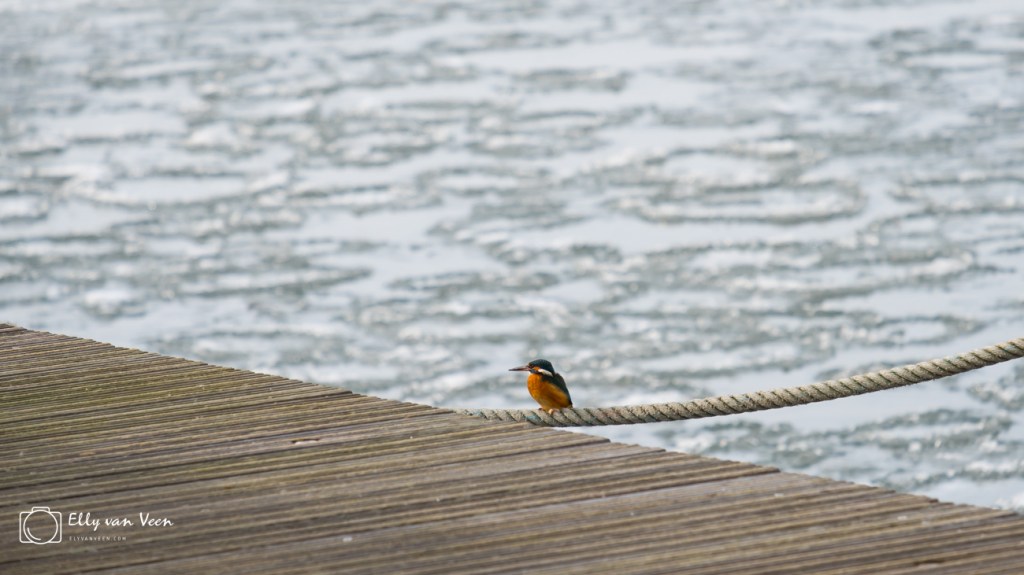 Het ijsvogeltje zat aan de haven stil te wezen, maar gelukkig viste ie volop