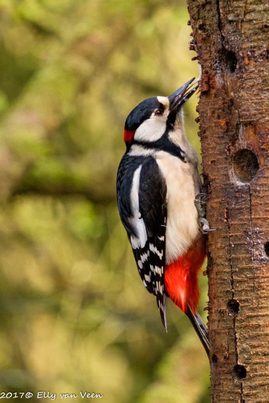ook de bonte specht kwam ons met een bezoekje vereren. Het zijn prachtige vogels om te zien. In de boomstam zitten gaten geboord waar wat vogelvoer in wordt gestopt, wat mooie plaatjes oplevert.