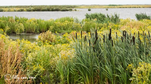 Ieder jaar wil ik 1 x naar de Markerwadden in het Markermeer. Het lijkt me boeiend om te zien hoe dit project zich ontwikkelt. In 2018 was het een kale zandvlakte, in 2019 was het vooral geel door de Moerasandijvie. Dit jaar was er een kleur bijgekomen, prachtig bruin van een overvloed aan lisdoddes, beter bekend als de rietsigaar. Ook de rolklaver is voor mij nieuw.