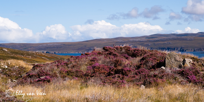 We zijn onder de indruk van wat we allemaal zien onderweg, het landschap wisselt steeds en iedere keer als je de bocht om gaat, ben je weer blij verrast door al het moois. De heide bloeit volop en geeft een prachtige kleur aan het landschap.