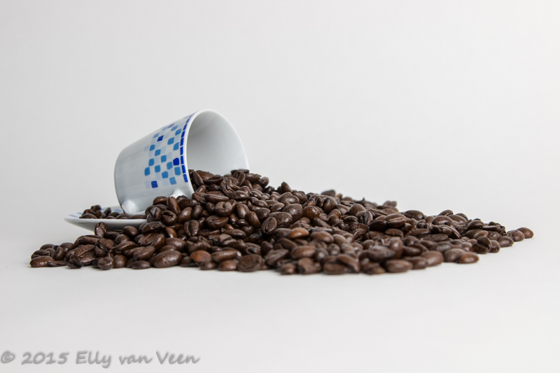 Het koffiekopje met de bonen vind ik geslaagd. De achtergrond is wel erg wit geworden. Ik lees dus net in een artikel dat ik beter de belichting had kunnen ++ met minimaal 1. Iets om te onthouden…of nog beter…ik ga het overdoen. Ik wil het verschil zien.