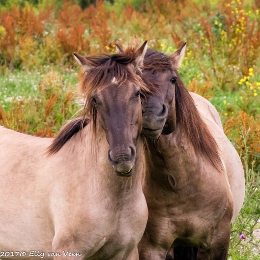Rustig liep ik richting kudde en toen begonnen de wat grotere veulens ook te “knokken” heel schattig om te zien