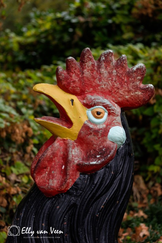 Tenslotte bestrapte ik deze haan bij de Oase, ook hij probeerde de kippen te lokken met burlen. Of het gelukt is????