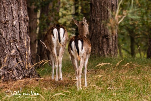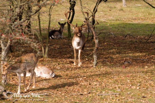 Als snel zien we de eerste hindes bevallig lopen, tenslotte is het de maand van de liefde.