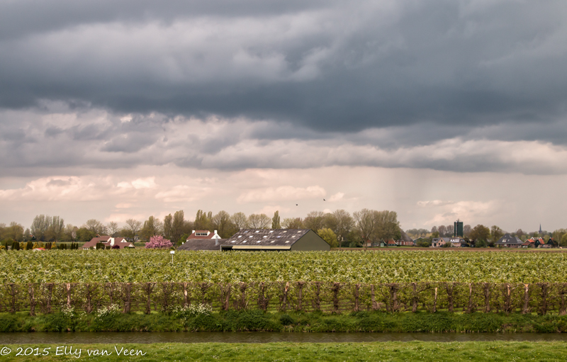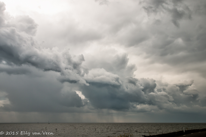 foto 40: Als ik de gordijnen open doe, zie ik deze veelbelovende wolken en idd :regen, hagel, onweer: alles zat erbij vandaag.
