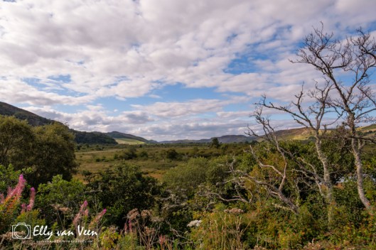 Een jong edelhert kwamen we tegen bij Achnasheen, hij/zij kijkt me een beetje betrapt aan, en liep vervolgens naar zijn mama