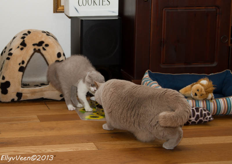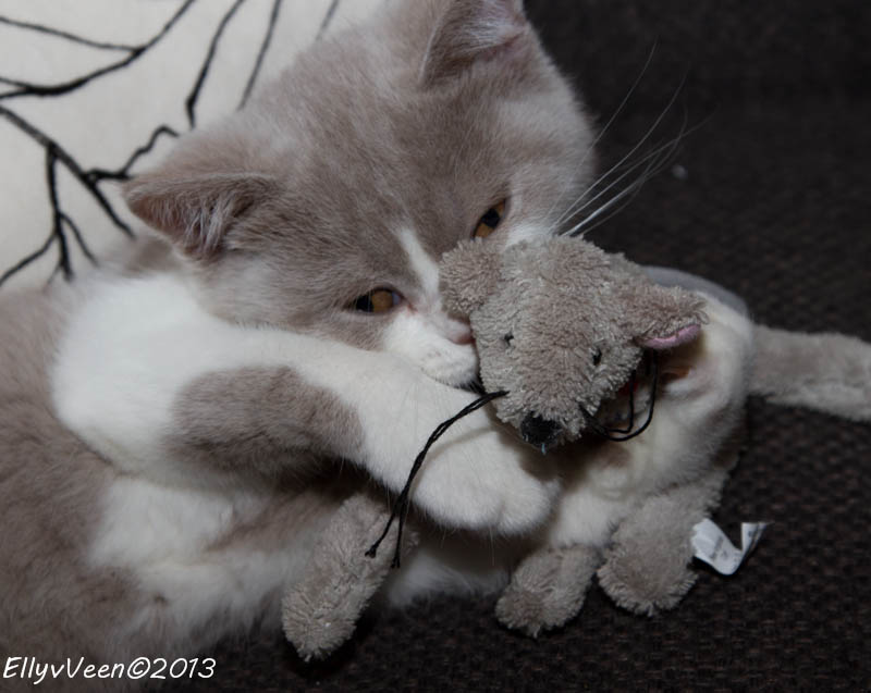 Het is een schattig katje, knort heel luidruchtig, ligt het liefst in mijn nek, stuitert als een ADHD-bal door het huis en wil vooral geknuffeld worden. Fayline wordt ook weer helemaal jong en doet lekker mee. Nu wat foto’s: