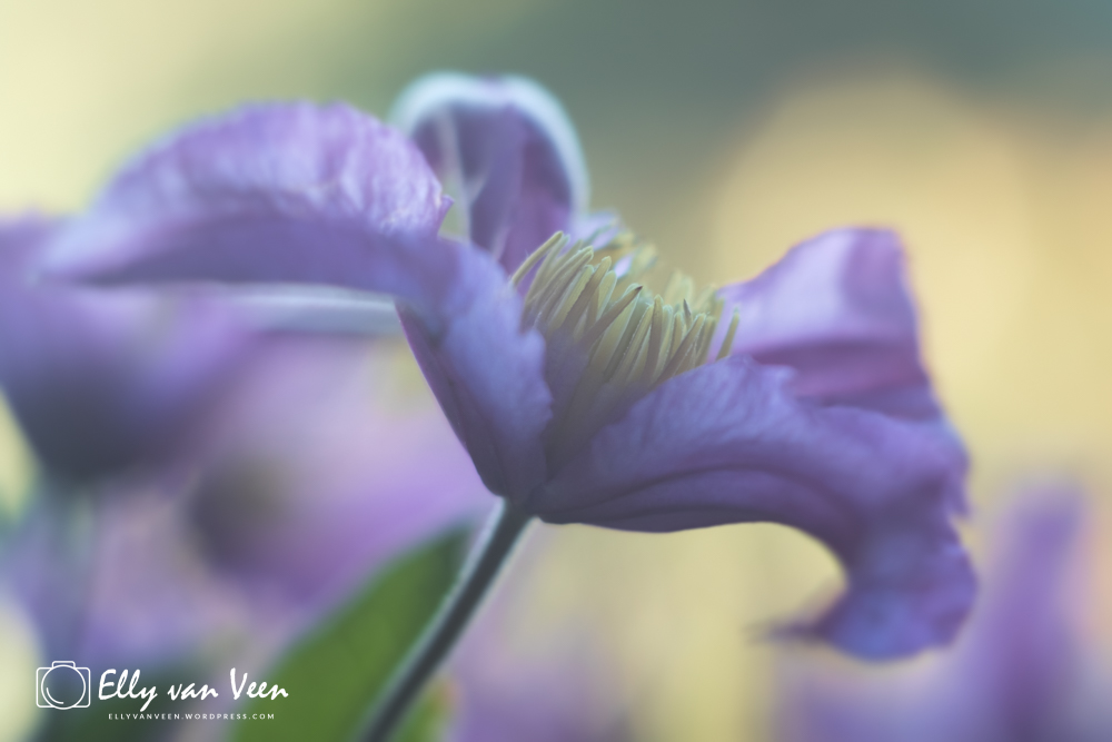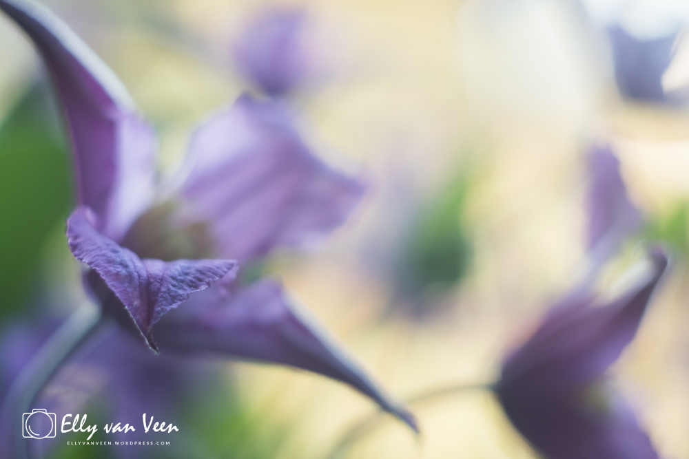 Het bosje clematis wat ik deze week kocht, stond naar me te lonken….”we willen op de foto”‘….De keuze viel op mijn minst gebruikte vintage lens, de Helios 44M. Vraag me niet waarom, maar dit lensje pak ik het minst snel, maar als ik dan de foto’s zie….niets mis mee! Vanmiddag heb ik de camera met een monopod én afstandsbediening gebruikt. Dit is me prima bevallen.
