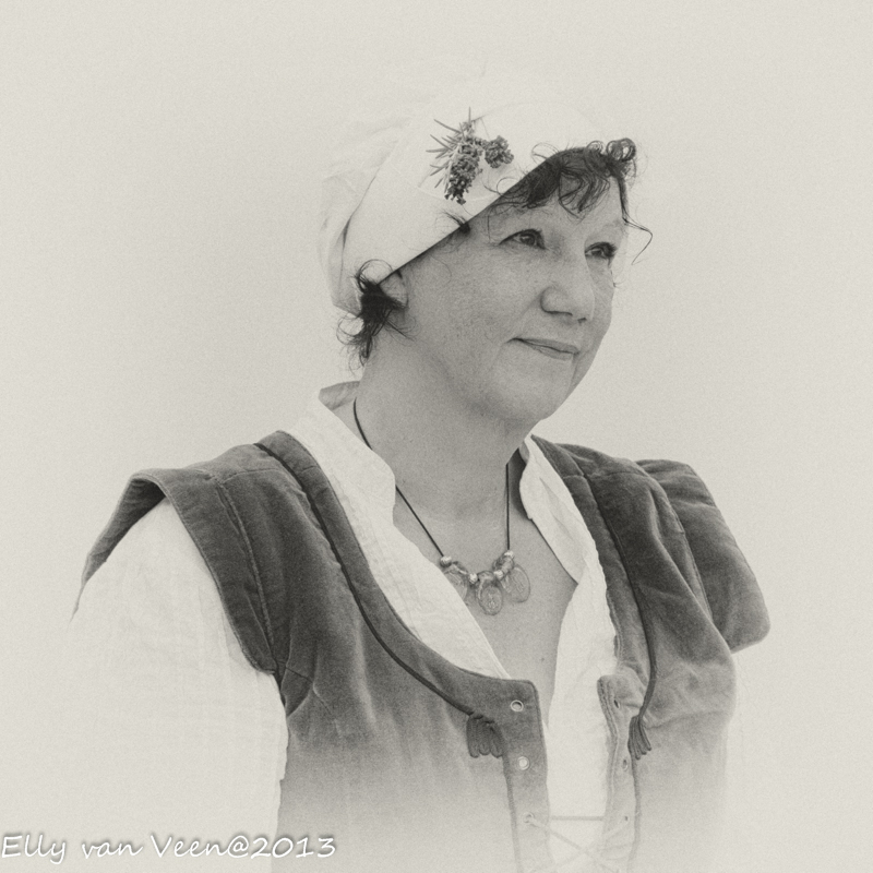 In Hanzestad Harderwijk worden in de zomer regelmatig Hanzemarkten gehouden. Onderdeel van de Hanzemarkt is een kleine middeleeuwse markt, waar vrijwilligers gedreven hun rol vervullen. Dit levert fraaie foto’s op, welke ik heb omgezet in zwart/ wit met Silver Efex Pro.